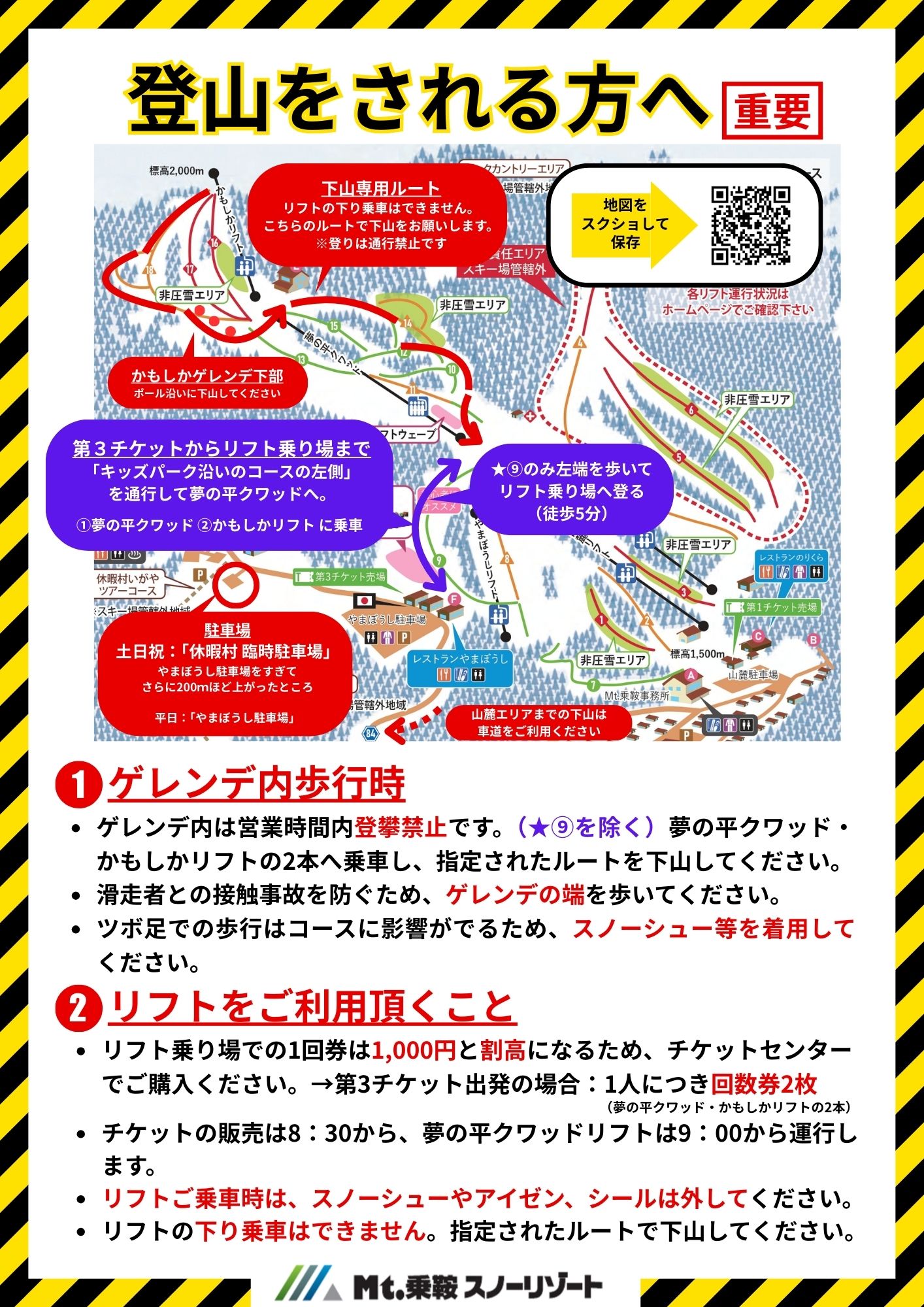 2 スキー場のリフトを利用してバックカントリーや登山へ出かける際は登山計画書を提出し、自己責任で行動してください。